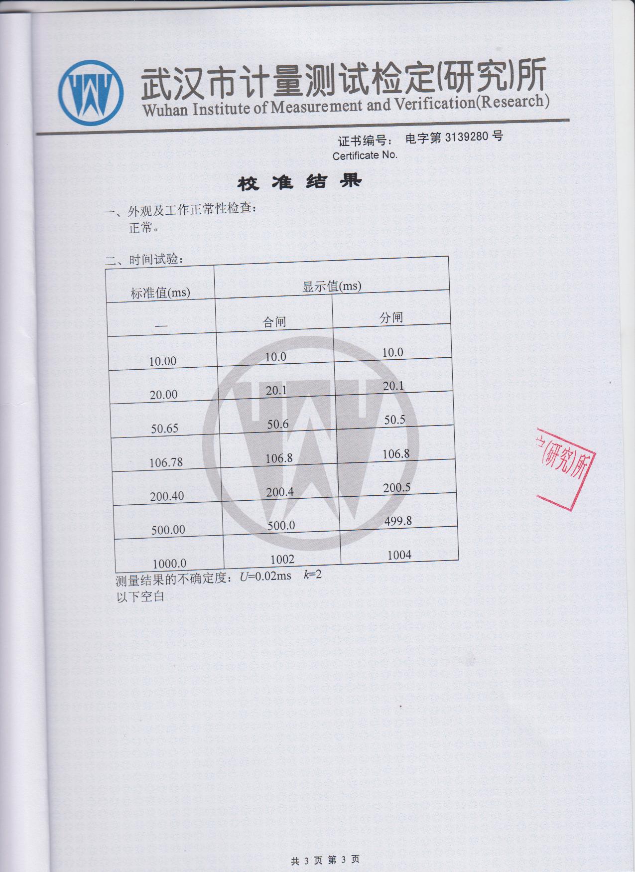 誤 差 真空斷路器 1%±1個字