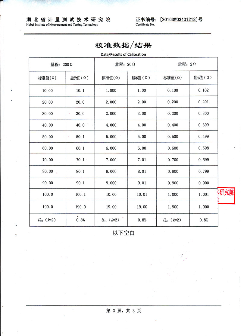 測試范圍 0—199.99mΩ