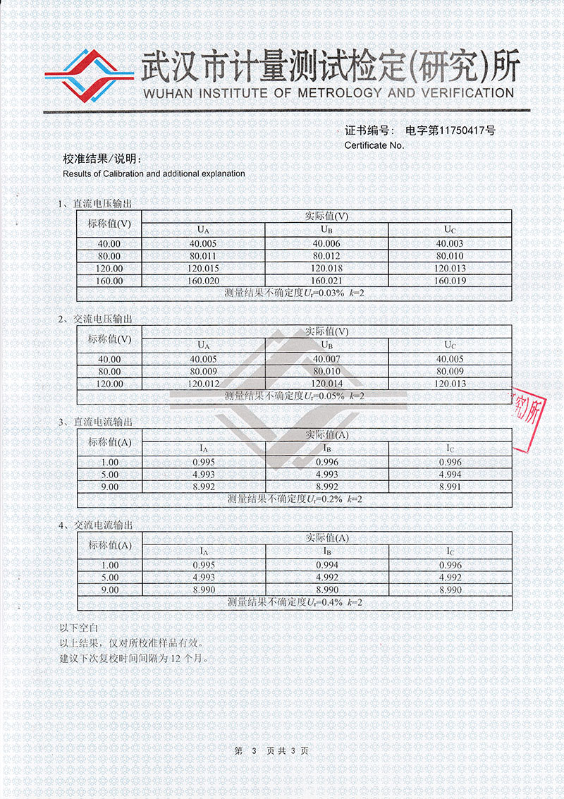 9、功率放大部分采用新型大功率高保真線性功放電路,輸出功率大、紋波干擾小,每相電壓可輸出120V、電流可輸出20A。在輸出電流達到20A時,輸出功率可達250VA/相以上,波形仍能保證不失真、不削峰;